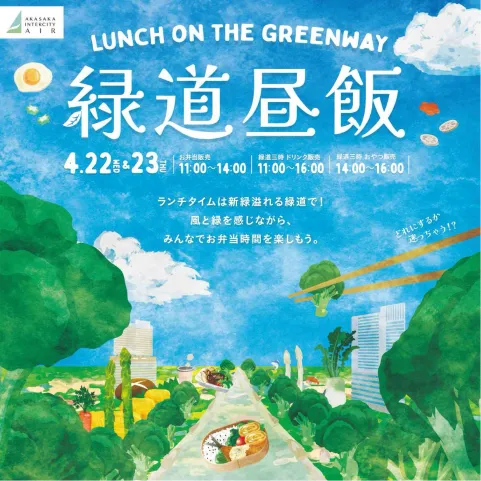 新緑あふれる緑道で、風と緑を感じながらお弁当時間を楽しもう!この2日間は緑道にテーブルや椅子を特設、さまざまなお弁当を販売します!